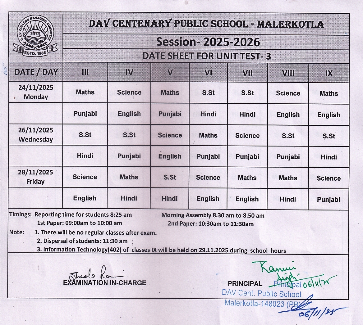 DAV CENTENARY PUBLIC SCHOOL Malerkotla - 148023 (PB) INDIA Telephone No.+91 - 01675 - 293353 E-Mail-[email protected]